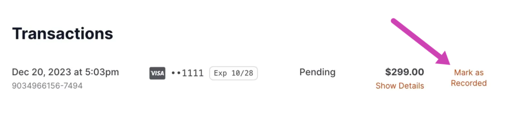 - Click “Mark as Recorded”: Clicking this button confirms that you have recorded the transaction in your practice management software. It acts as a reminder that the payment has been processed.